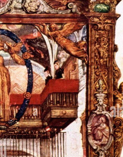 Was sehen wir real auf diesem bild. Einen Knaben. Auf gut deutsch gesagt mit kleiner Lautverschiebung einen Knaben / Knapen. Der Sklaver muß / darf seiner Herrin in den Ausschnitt gucken und sagen. Matona mia cara. gucken und mit Orlando vom Lasso sagen